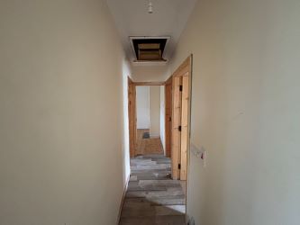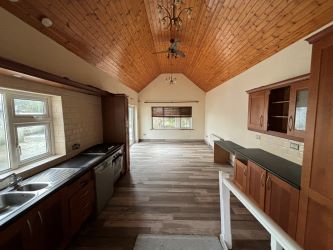 Internally the property comprises an entrance hallway, spacious living room with open fire place with tiled flooring. Double doors lead to a spacious kitchen/ dining area. The kitchen has been recently fitted with floor & wall units. A main bathroom, two spacious double bedrooms and a single bedroom completes the accommodation. There is a stira pull down attic stairs.