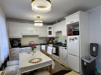 Kitchen/dining area: Mixture of tiled and carpet flooring, tiled backsplash, wall and floor units, plumbed for dishwasher and washing machine.
