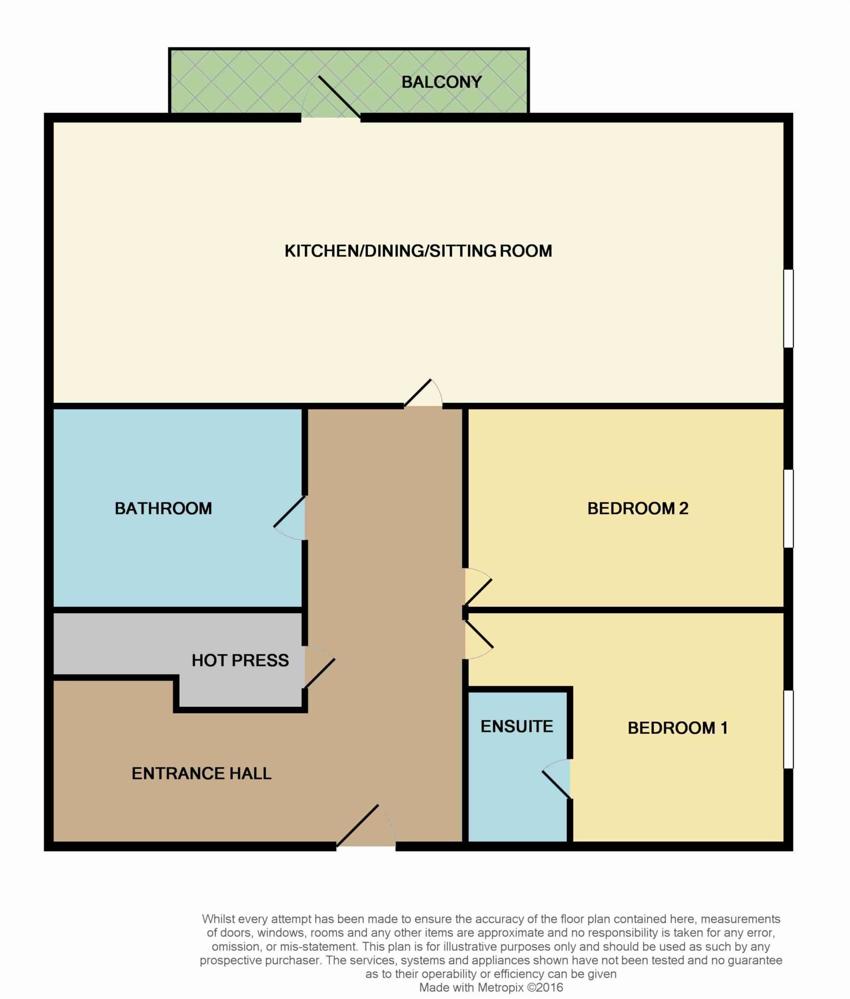 The accommodation briefly comprises : entrance hall with hot press, open plan livingroom/diningroom with large glass patio doors leading off to a balcony and two generous sized bedrooms with one en-suite and a main bathroom completing the accommodation.
