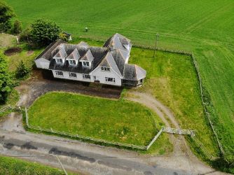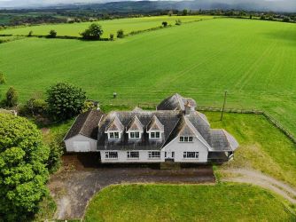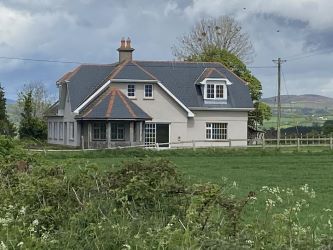 5 bedroom detached house with detached garage for sale by Online Auction, Youbid.ie on the 24th June 2021. Located in Flemingstown the property features a five bedroom accomodation with a partially developed over head dormer that has potential for another 5 bedrooms once developed. The property had OFCH and solar panels attached historically. The property benefits from superb views of the surrounding mountains and countryside,