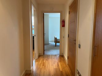 The light filled interior comprises; a generously sized entrance hall with extensive storage, open plan living /kitchen area which opens out to a balcony. The spacious bedroom enjoys built in wardrobes and the bathroom completes the accommodation. The balcony deserves a special mention, finished with toughened glass, stainless steel balustrade and a decking area enjoying an easterly view of Cork city skyline, and south towards St Finbarr’s Cathedral. This property also comes with a designated parking space in the secure, underground car park.