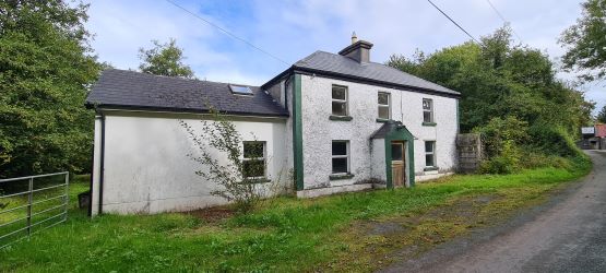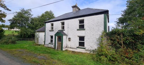 Extended traditional four bedroom 2 storey farmhouse set on circa 1.8 acres located in the heart of the lake land area of County Leitrim. The property was previously extended to both gables and to the rear providing an overall floor area of an impressive c. 146 sq.m. (c. 1,571 sq.ft). The property requires completion but has the potential to be an idyllic country residence. The original house dates to circa 1911 and is a former 2 up 2 down farmhouse with a large extension to the rear providing an excellent living area with a walk in fire place and extensive glazing.