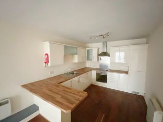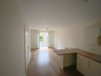 The property comprises entrance hallway, two bedrooms, one of which is ensuite, a main bathroom and a large open plan kitchen/living/dining area with access to a patio and garden to the rear of the property.